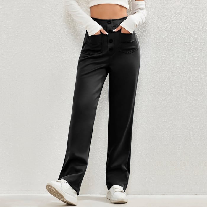 🔥Black Friday Sale🔥High Waisted Button Multiple Pockets Straight Leg Casual Pants
